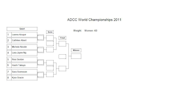 Até 60kg: Fora alguma surpresa, Luanna Alzuguir x Michelle Nicolini deve ser uma das semifinais. Kyra Gracie deve esperar a adversária entre Hashi Takayo e Rosi Sexton, duas incógnitas. Aposta na final? Luanna x Kyra!