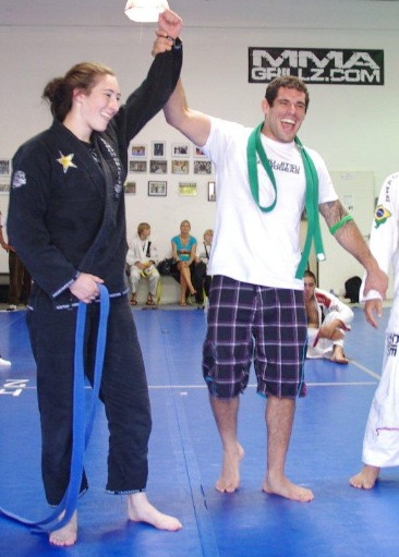 Alexis Dufresne is a 19-year-old blue belt. She’s won every tournament she’s competed in including the Pan, CA Nationals, Gracie Nationals and Grappling X, but came in third in the Worlds 2010. She took the Bronze only because she dislocated her shoulder on the mats. She still competed in the final, but says she just couldn’t defend against the choke that submitted her. Alexis is one tough girl. At the Carlson Gracie tournament, not only did she win her division, but she decided to take on the men’s division, too.