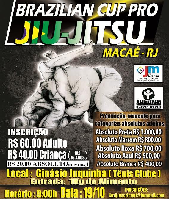 A cidade de Macaé, no Rio de Janeiro, se prepara para receber o Brazilian Cup Pro de Jiu-Jitsu no dia 19 de outubro, no ginásio Juquinha Tênis Clube.