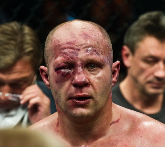 Against Big Foot, there Fedor stayed. The hammer fists weren’t enough to cause the ref to stop the battle, but they did cause enough damage to the former emperor’s left eye that is closed up completely as the bell ending the second round sounded. Following intervention from the doctor, while Big Foot fought to contain his tears of joy, Fedor spoke through the microphone.