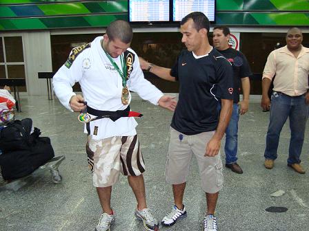 Inusitado receber a faixa no aeroporto? Bem, o Jiu-Jitsu é cheio dessas histórias. Há os que receberam no pódio após uma grande conquista, num restaurante ou até no hospital. São muitas histórias intrigantes que rondam o mundo da arte suave.