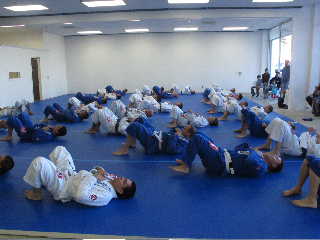 After a BJJ Fundamentals class, the most anticipated class was taught – a two-hour seminar on sweeps and submissions from butterfly guard. Over 35 students from schools all over Southern California crammed onto the mats, while Master Carlos Gracie, Jr., black belts from other schools and family members and spectators filled the bench spaces behind. Almeida stood on the mats watching, in awe, overjoyed with the success of his new school’s grand opening.