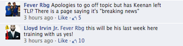 We have contacted a few team leaders to know if there is any talk with Keenan or his family.