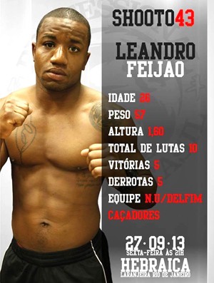 Luto no esporte. O atleta de MMA Leandro Feijão, da Nova União/Delfim Caçadores, se sentiu mal e faleceu nessa quinta-feira, dia 26 de setembro, no dia da pesagem do evento Shooto 43, no qual lutaria com Gabriel Brasil na divisão de pesos-moscas da organização. Ele, que tinha 26 anos, não compareceu a pesagem do evento, e seu falecimento foi comunicado pelo Facebook por André Chatuba, seu companheiro de treinos.