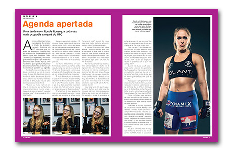 Conseguimos a façanha de passar uma tarde inteira ao lado de Ronda Rousey, a bela e ao mesmo tempo a fera do MMA feminino que luta para arrumar tempo para para si em meio aos treinos duros e aos milhares de compromissos fora do ringue.