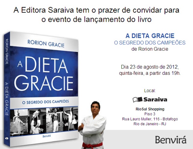 Após sucesso nos EUA, o livro “A Dieta Gracie – o segredo dos campeões” será lançado na livraria Saraiva do shopping carioca, hoje às 19h.