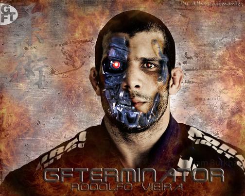 O apelido não foi inventado por Rodolfo Vieira, nem mesmo por este repórter. Na verdade “Exterminador” é uma brincadeira dos amigos e fãs da GFTeam postada na internet, como mostra a arte logo acima. Mais que uma brincadeira, uma homenagem ao representante da equipe do Méier, no Rio de Janeiro, que já é o personagem do ano na arte suave. Na temporada, Rodolfo venceu peso e absoluto no Pan, World Pro e Mundial.