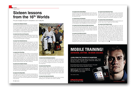 The issue further features what went on behind the scenes at the 16th World Championship, with inspiring and jaw-dropping photos, and 16 of the main lessons we learned from the monsters who dominated the action there – from Gabi Garcia to the female champion with a broken rib, Gilbert Durinho to the blue belt who showed up in a wheel chair. This magazine is, without a doubt, a collector’s item and a must-have for anyone wishing to keep a part of the sport’s history for themselves.