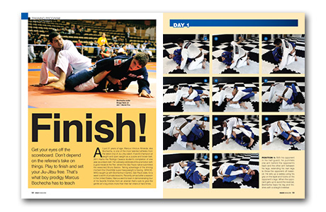 In Training Program, aggressive world runner-up Marcus Bochecha is the instructor of the month, presenting four well-designed and efficient attacks for you to haunt your partners in training, whether by getting a vice grip on their necks or stretching out their legs.