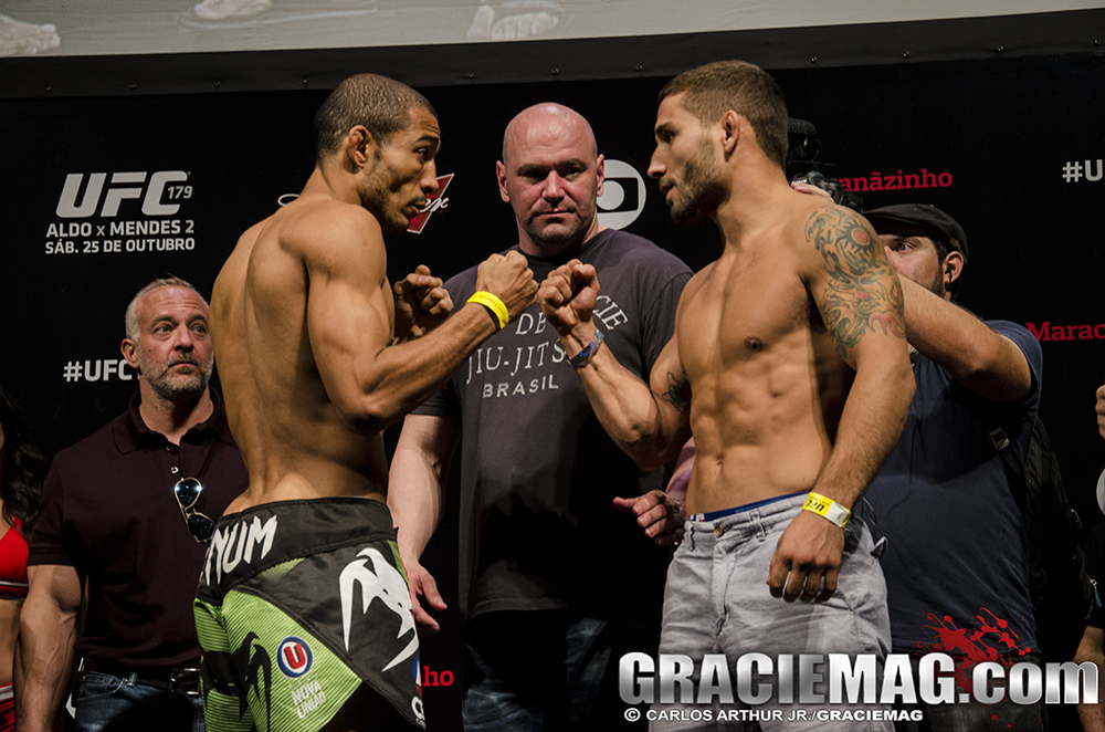 O ginásio do Maracanãzinho, no Rio de Janeiro, foi palco para a pesagem do UFC 179, o UFC Rio 5, com um dia repleto de atividades para os fãs de MMA e ao temido duelo entre os atletas e a balança.
