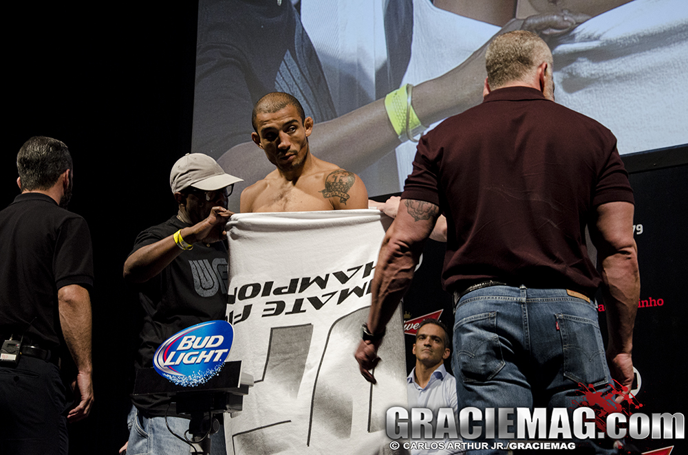 Para certificar a luta principal, Chad Mendes subiu na balança e pesou 65,8kg. Logo em seguida, na vez de José Aldo, um susto. O campeão peso-pena não ficou dentro do limite de 66kg da categoria e precisou da toalha, para tirar a sunga e aferir o peso novamente. Após segundos de tensão, Lorenzo Fertitta chega pessoalmente ao lado da balança, olha o peso e garante a revanche entre Aldo e Mendes.