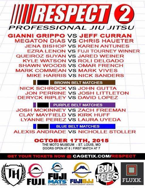 Respect 2 event will feature top fighters like Gianni Grippo, Megaton Dias, suyan Querioz, JEff Curran and others competing for prize money and pay per view webcast through Budo Videos. For more info check out www.respectjiujitsu.com