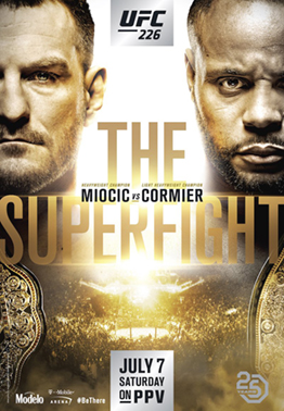 UFC 226 takes place Saturday, July 7th at the T-Mobile Arena in Las Vegas, Nevada. The main event features a heavyweight title fight between champion Stipe Miocic and light-heavyweight champion Daniel Cormier.